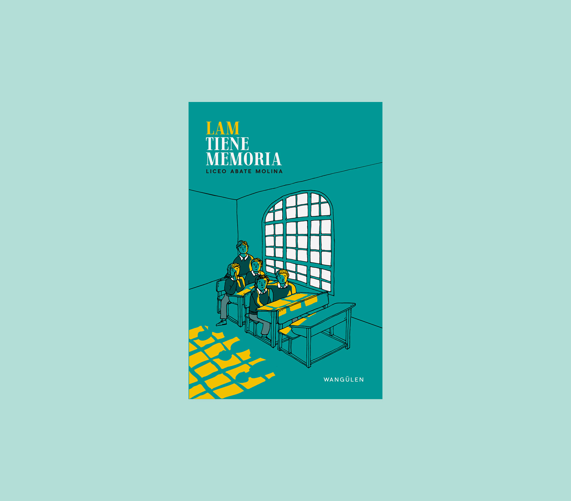 Ilustración para portada de libro LAM tiene memoria, creada en base a foto de estudiantes detenidos desaparecidos.