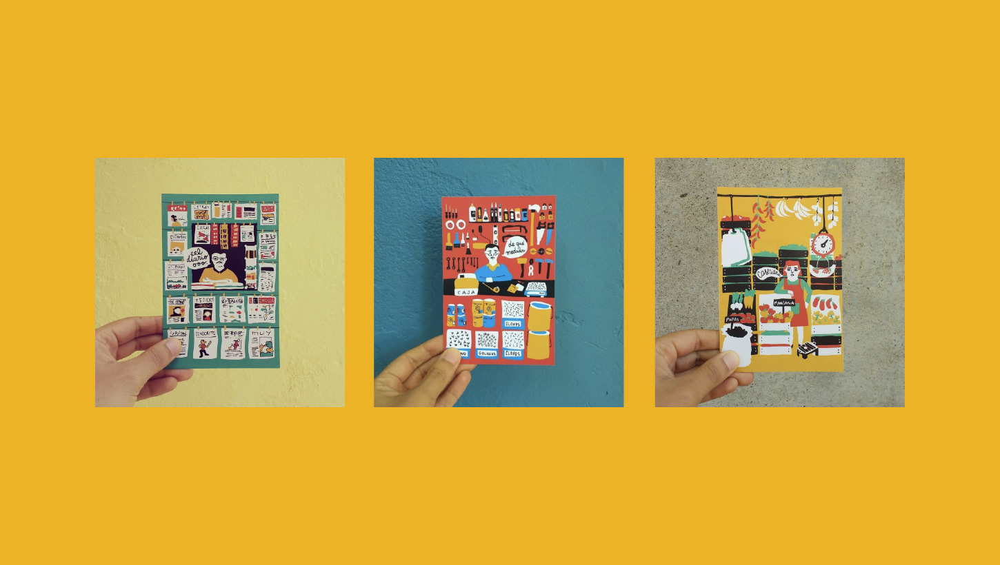 Ilustraciones basadas en locales del comercio clásicos de Talca o Chile