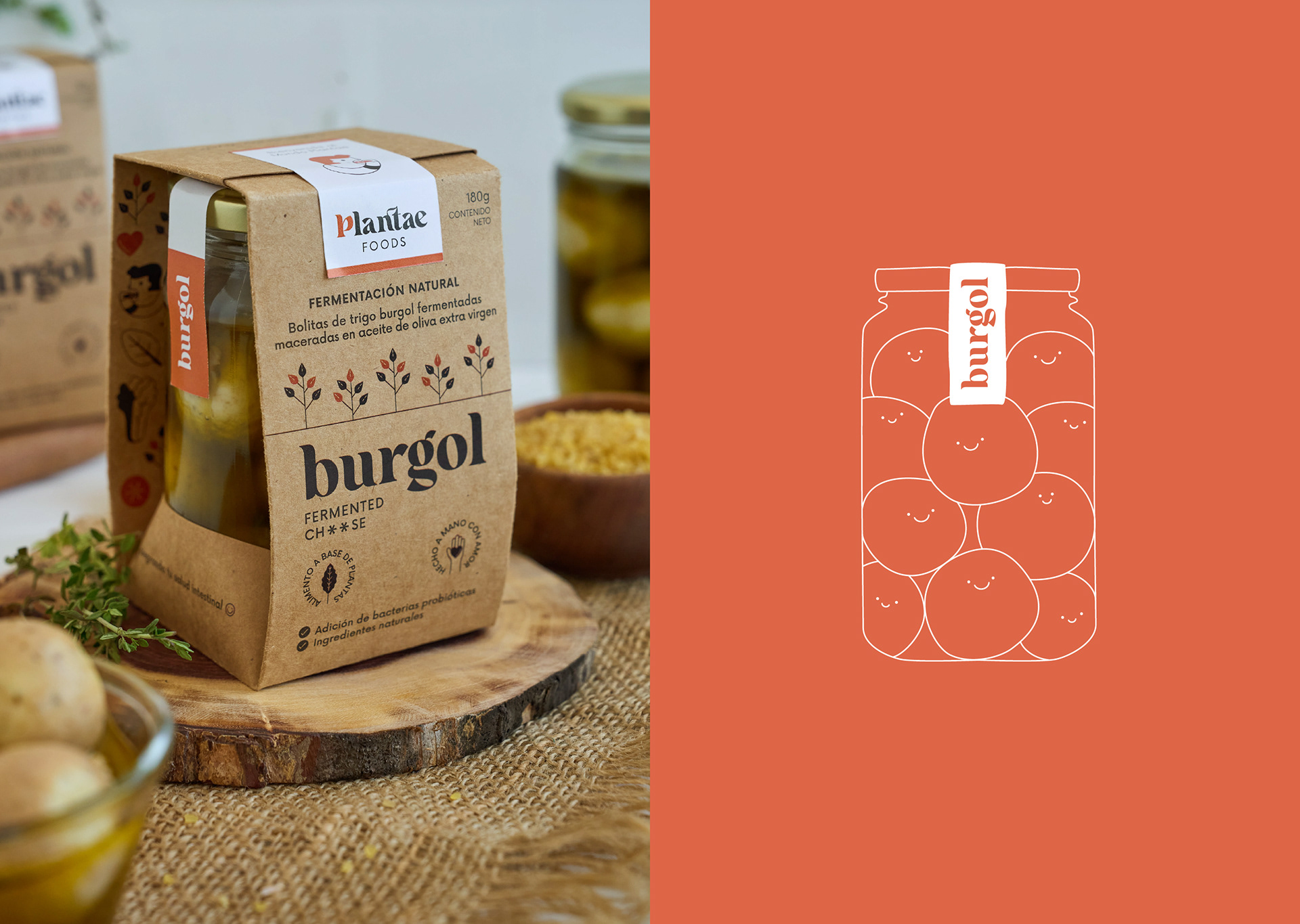 Diseño de packaging para fermented ch**se de la marca Plantae Foods, nuevo producto en base a la fermentación de trigo burgol. Dentro del desafío a abordar estaba que pudiera contener y proteger el frasco de vidrio, que fuera apilable, que el frasco no tuviera una gran etiqueta adhesiva pegada, además de ser una packaging de bajo impacto y amigable con el medio ambiente. Al ser un nuevo producto en el mercado, también era importante la diferenciación y poder ver el contenido del frasco.