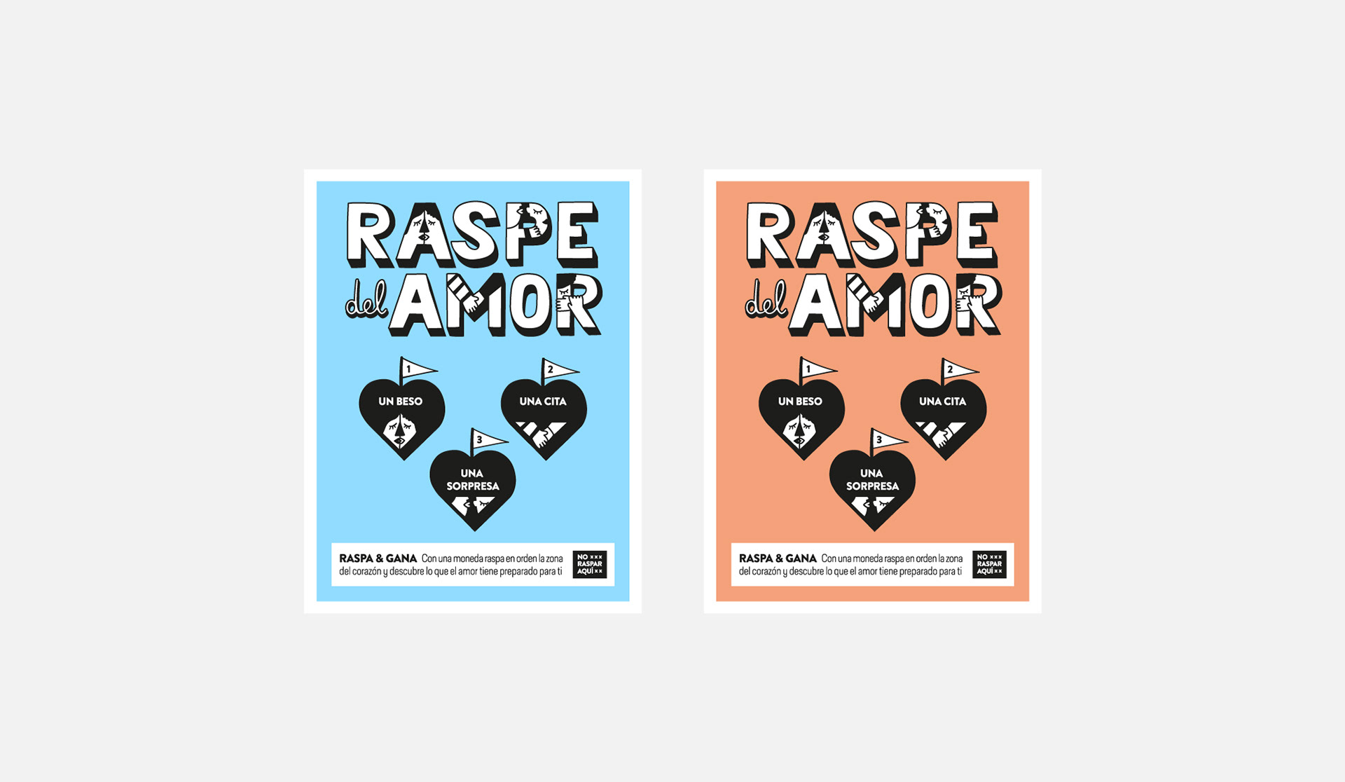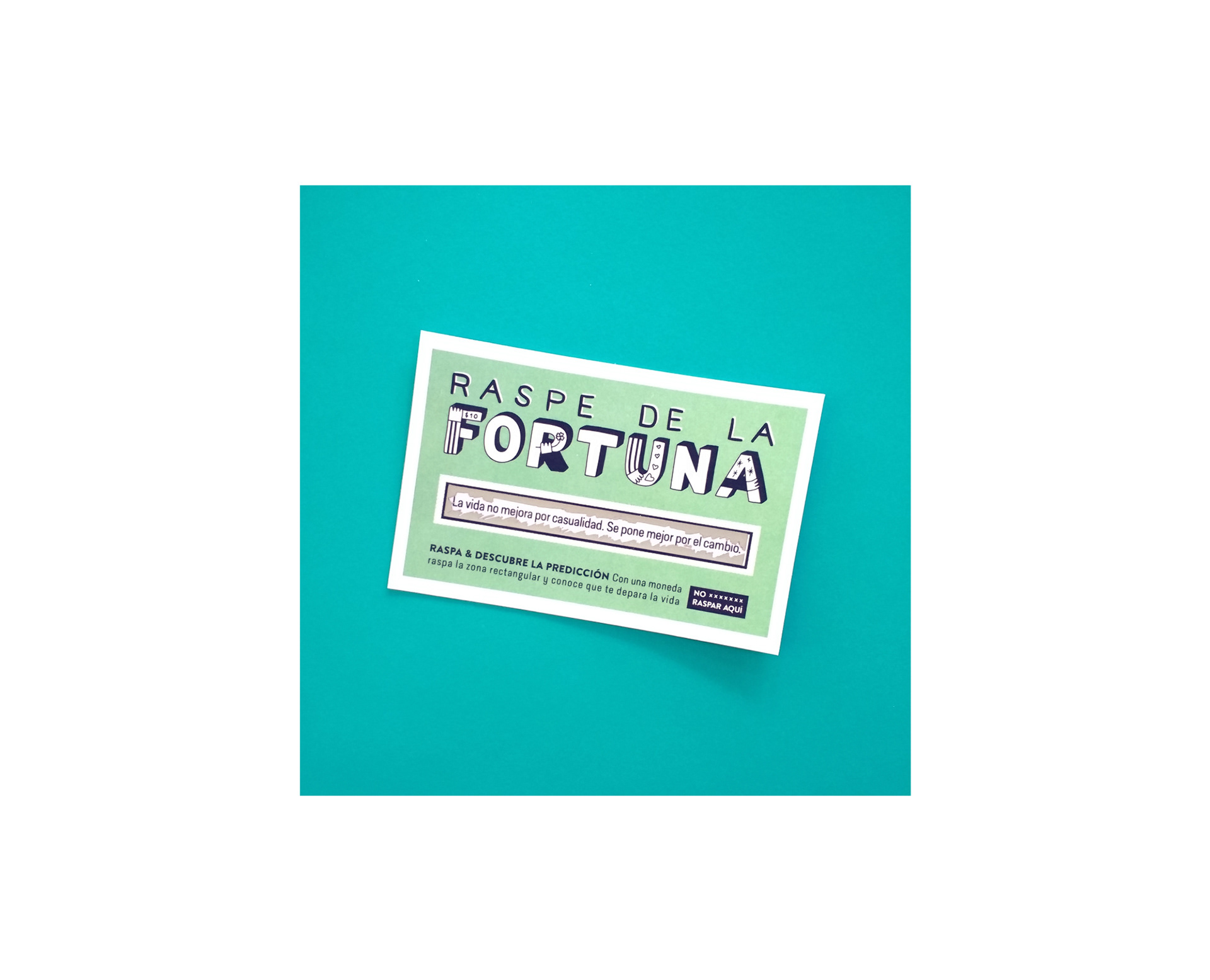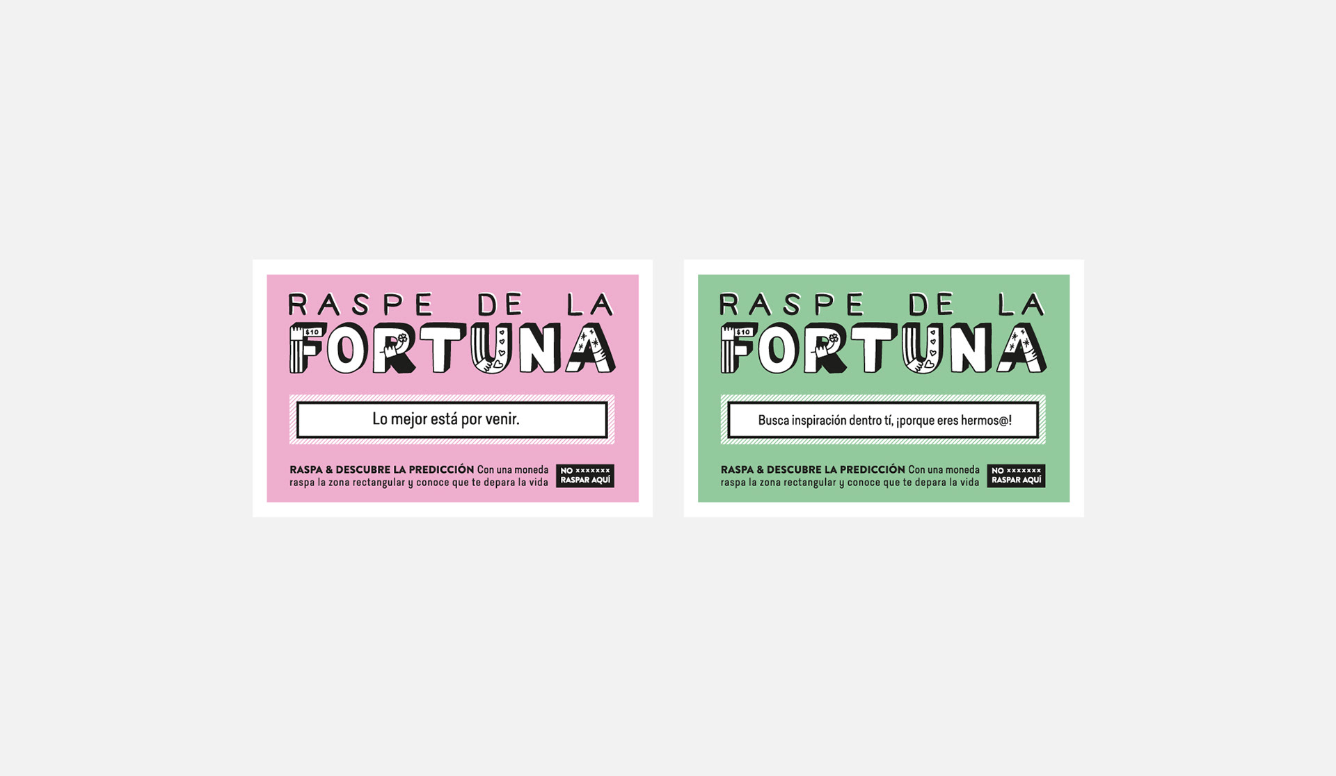 Diseño de papelería con raspe incluído, desarrollo de lettering con dibujos alucivos a cada raspe. Para cada versión de incluyeron distintas frases.