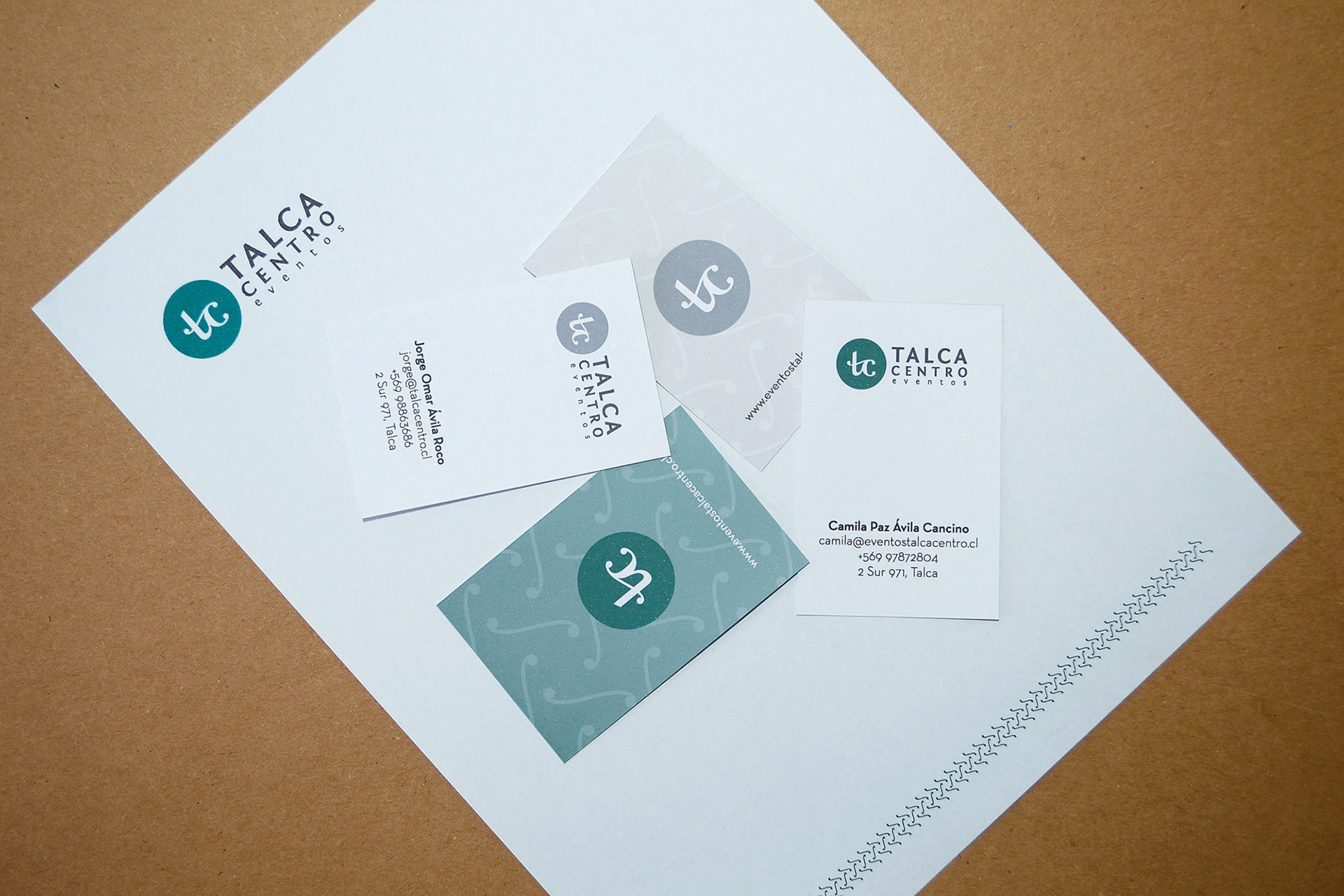 Diseño de imagen de marca para Talca Centro, bajo la idea de unión de la iniciales y la generación de un patrón a partir de eso.
