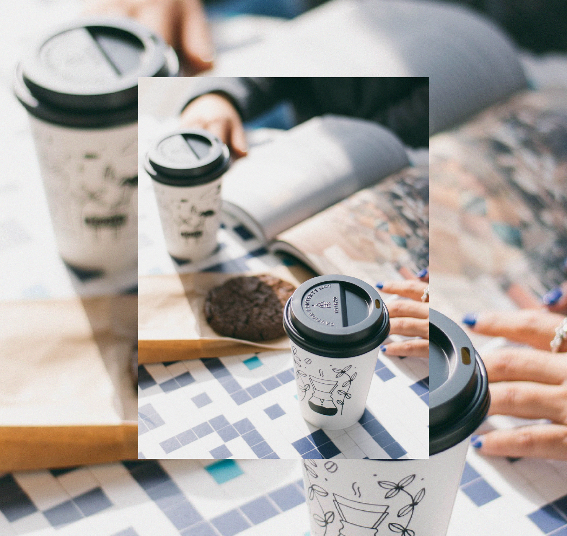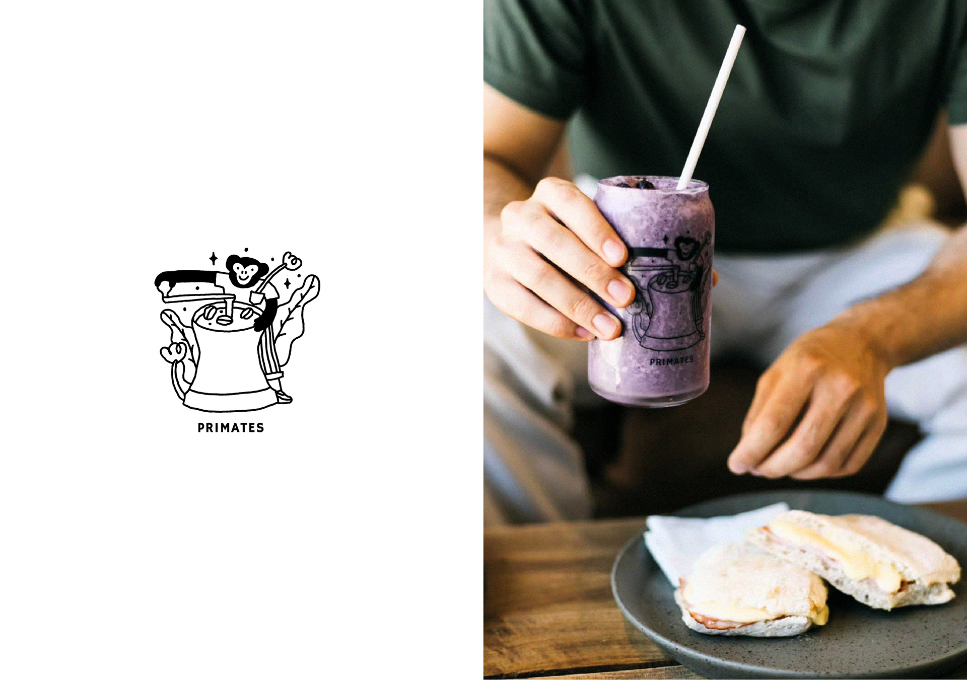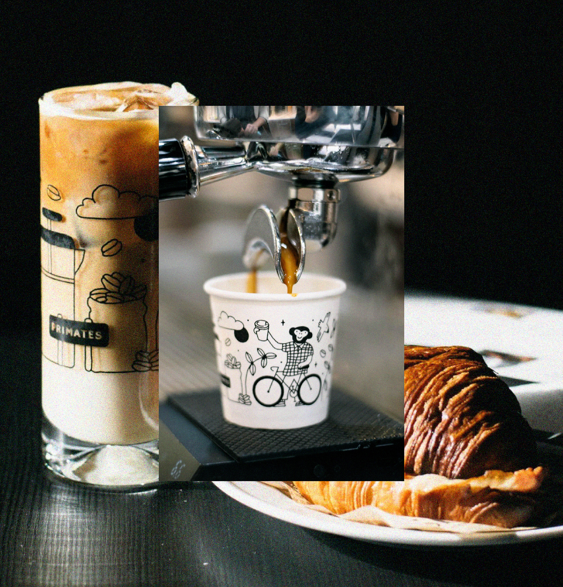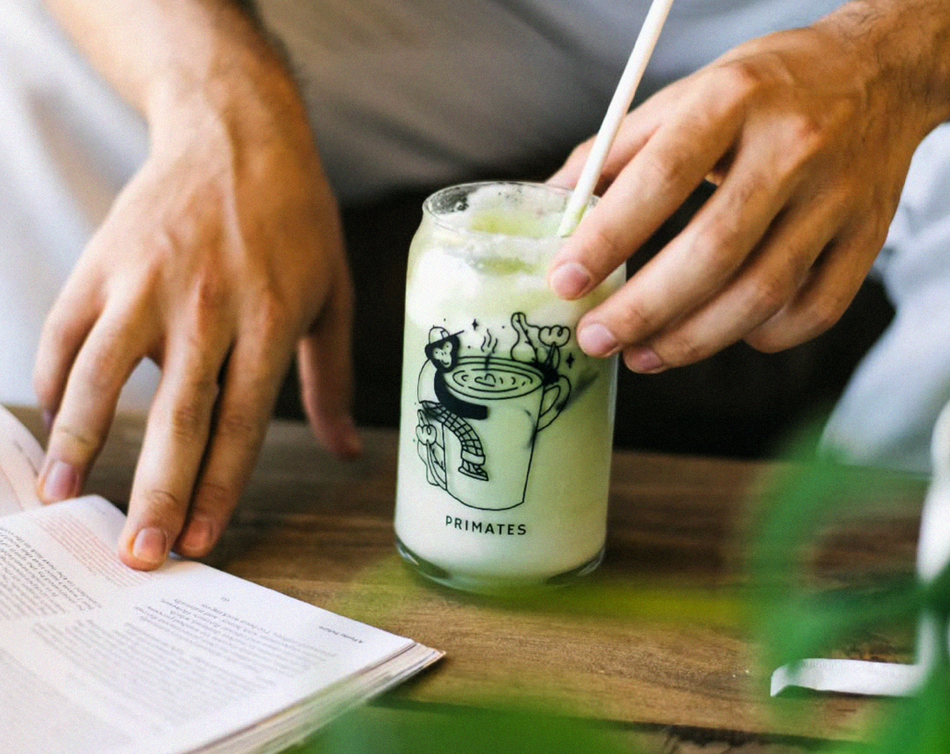 Desarrollo de ilustraciones para vasos de la Cafetería y Tostaduría Primates en Talca.